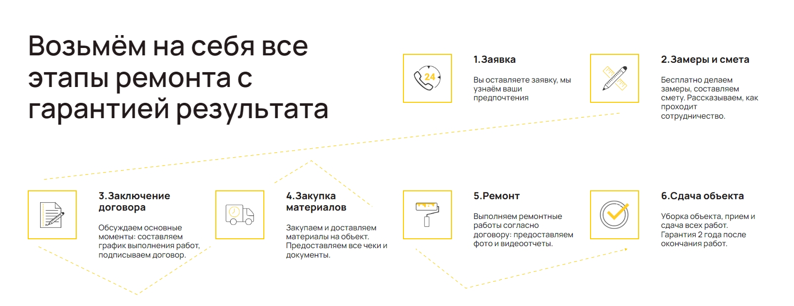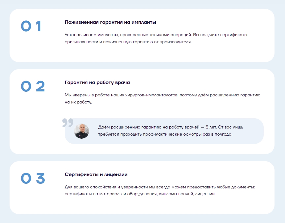 Если вы предлагаете услугу, опишите весь процесс сделки от звонка до завершения сделки. Если пользователь оплачивает услугу на сайте, объясните ему, что произойдет после списания денег. Посмотрите, что пишут конкуренты — возможно, более прозрачное описание этого блока выгодно вас отличит.