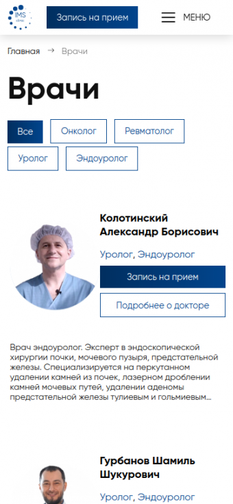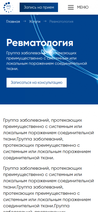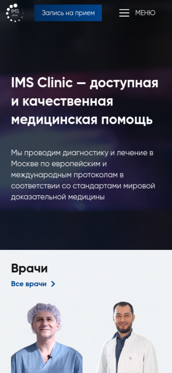 Сайт для клиники инновационных медицинских решений IMS Clinic, г. Москва